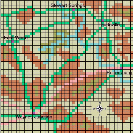 ..and the standard progress of the previous day started again at the beginning of the next day; by now though I was only five squares away from Rogersburg.